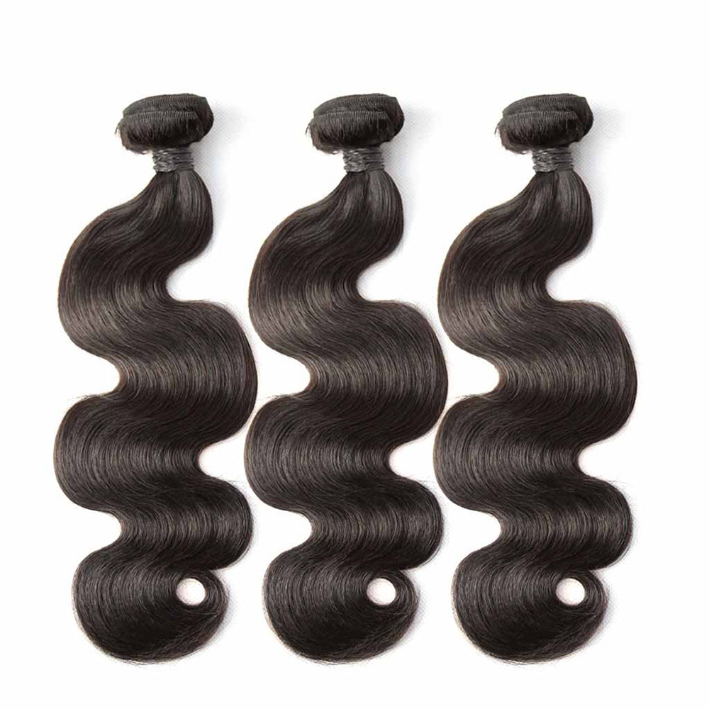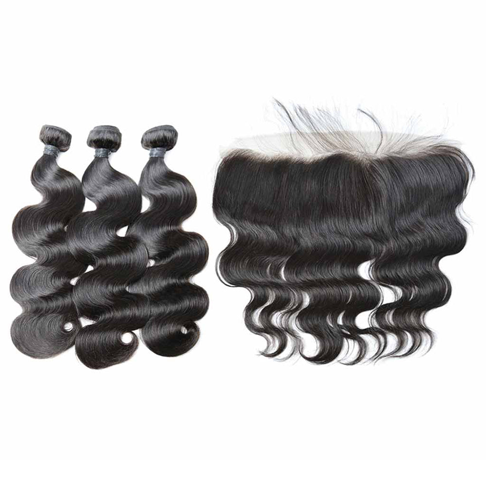 3 Bundle Deals With 13*4 Transparent Frontal Body Wave Virgin Human Hair Natural Black