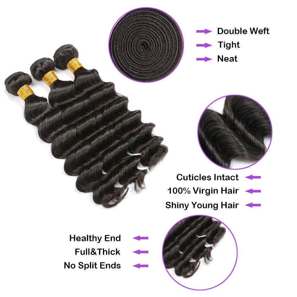 3 Bundle Deals Deep Wave Virgin Human Hair Natural Black
