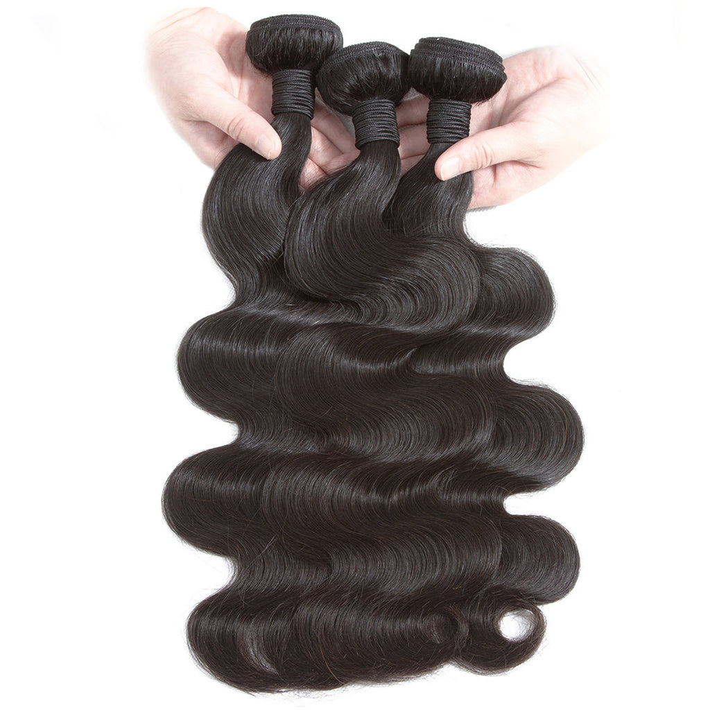 3 Bundle Deals With 4*4 Transparent Closure Body Wave Virgin Human Hair Natural Black